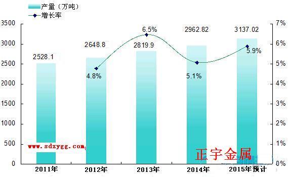 據(jù)正宇金屬統(tǒng)計,2010年無縫鋼管產能為2528.1萬噸,2012年為2648.8萬噸,較上一年增幅4.8%;2013年產能為2819.9萬噸,較上一年增幅6.5%;2014年產能2962.82萬噸,較上一年增幅5.1%;預計2015年產能將達到3137.02萬噸,較上一年增幅5.9%;如果今年產能超過預期,2015年增長幅度將超過2013年的6.5%,山東無縫鋼管廠產能將呈穩(wěn)定增長態(tài)勢,而需求端并沒有穩(wěn)定增長,存在諸多因素,終端需求量基本保持平穩(wěn),沒有出現(xiàn)忽高忽低走勢。